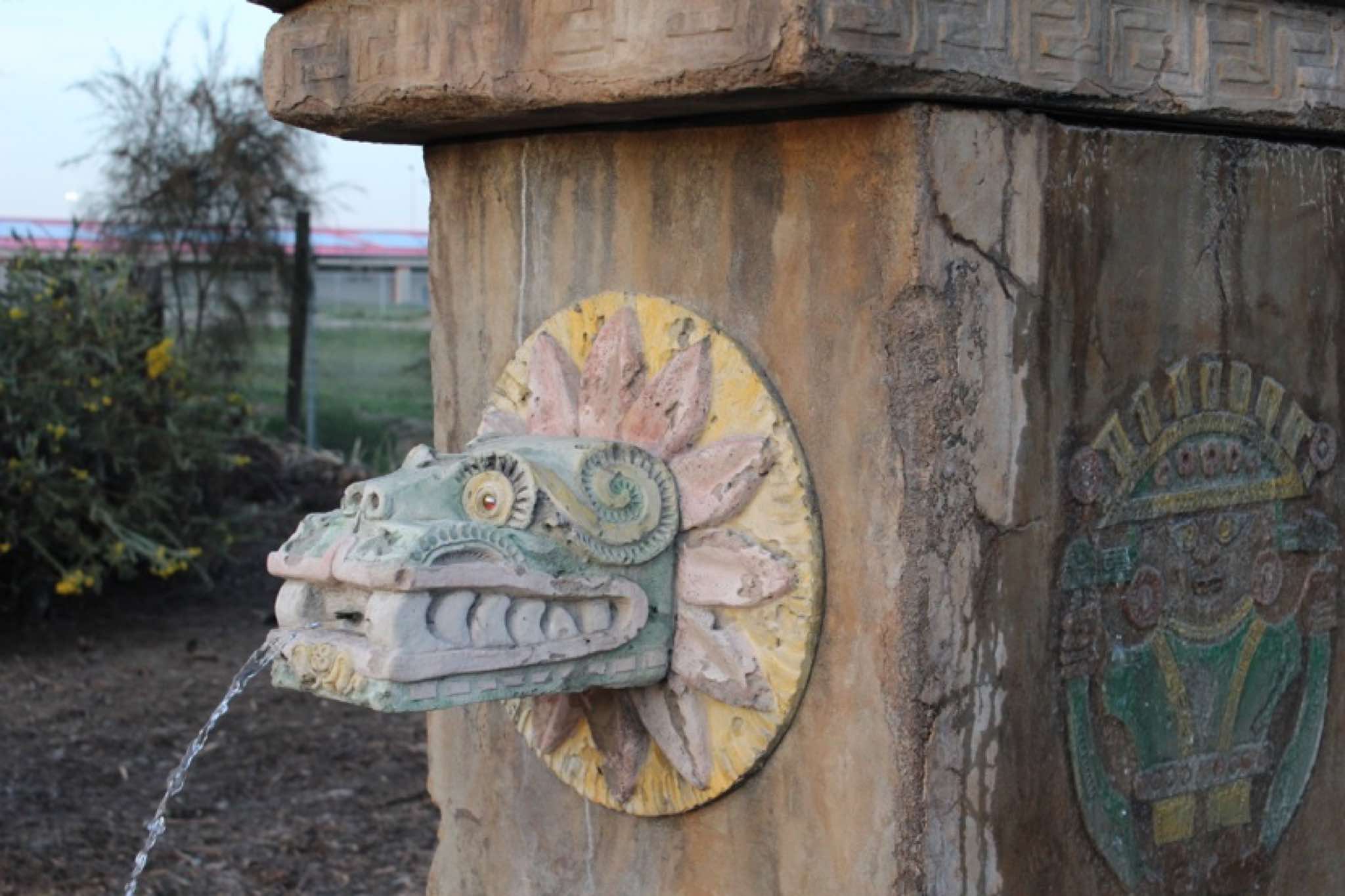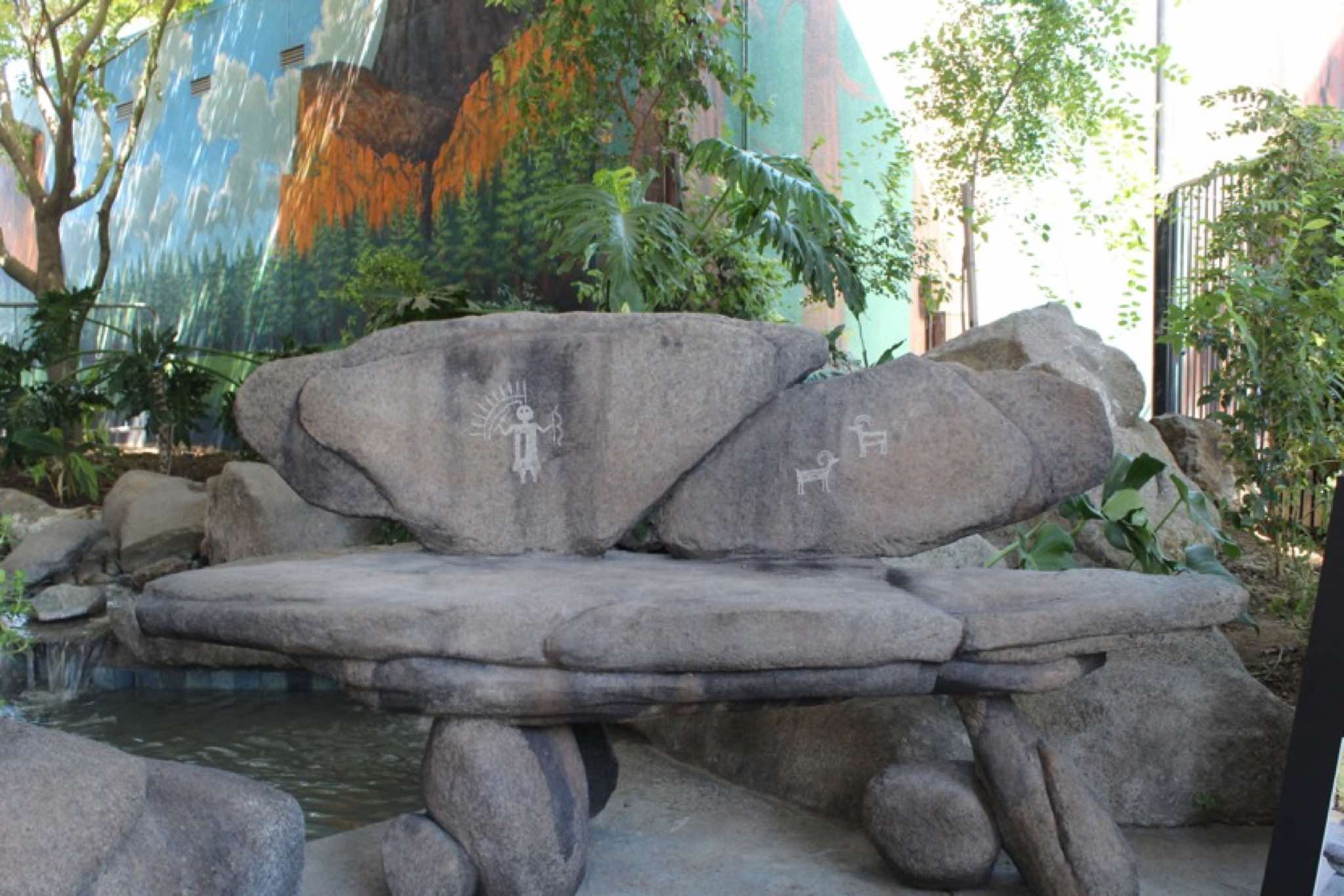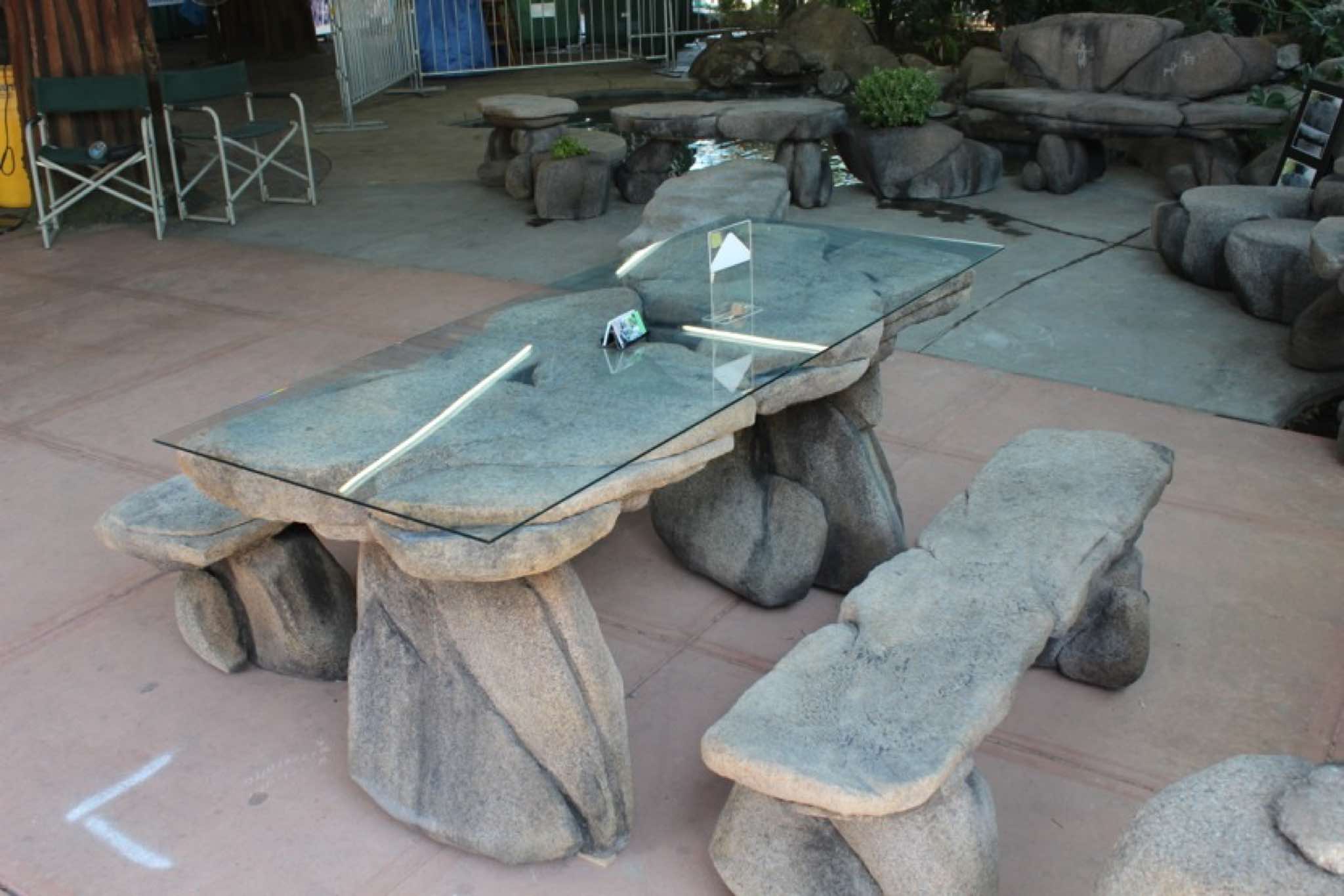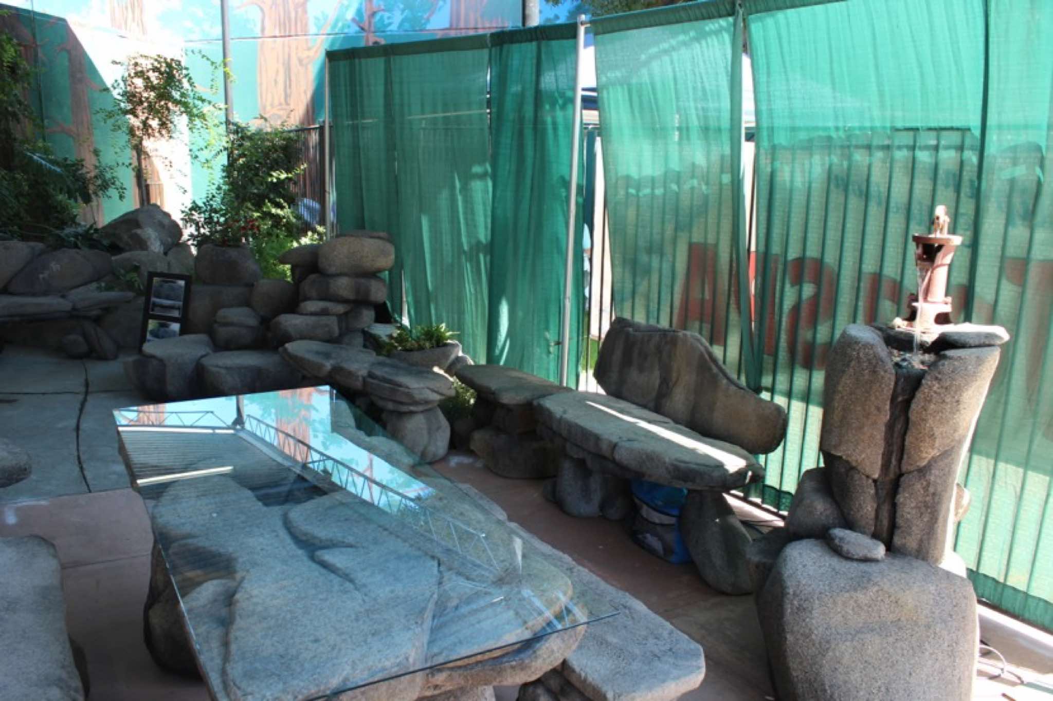 This pondless waterfall has over a 40ft long stream bed. At the end of the stream there is a small rock bridge to cross over to the other side where you can find a slate walkway to a bench next to the waterfall.This waterfall is on a remote system so it can be turned off and on with ease.
