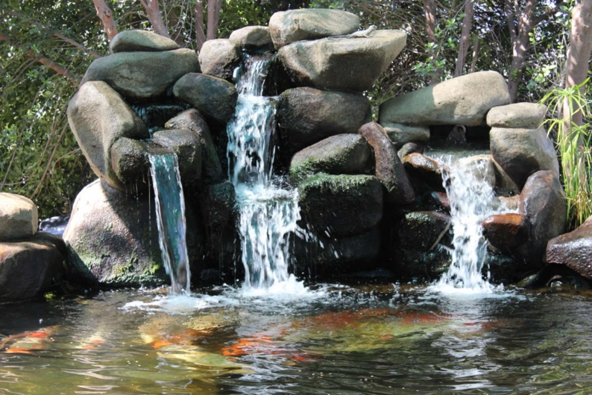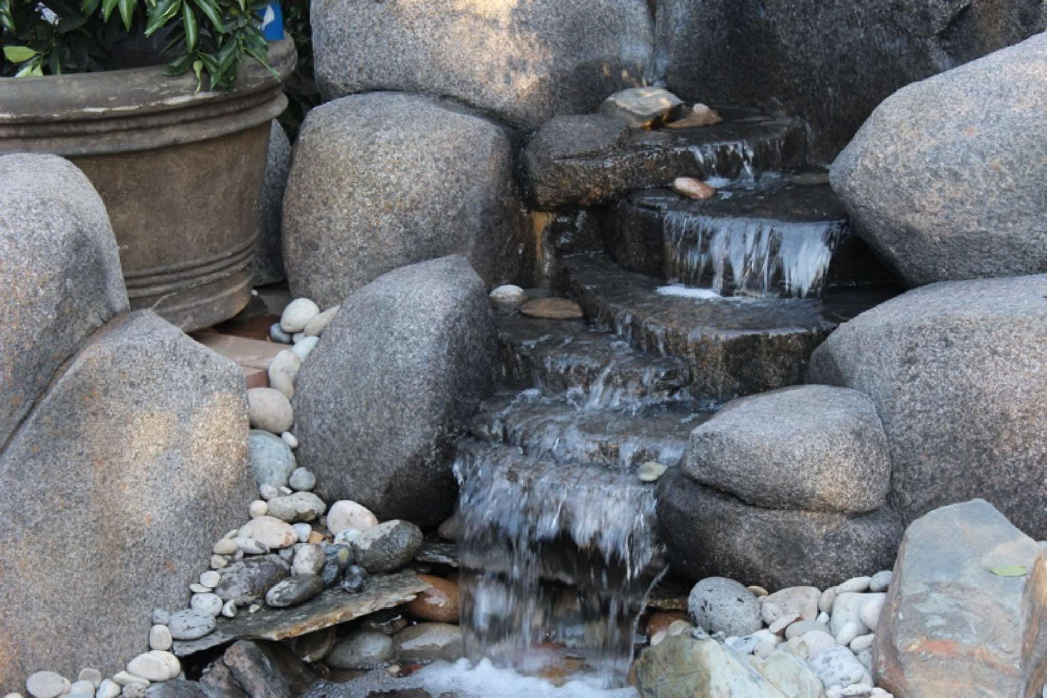 Here is a quick video of our old display waterfall. It is a large pondless waterfall with multiple spillways and a superficial ponding area in the front. When shut off the water completely disappears beneath the rock.