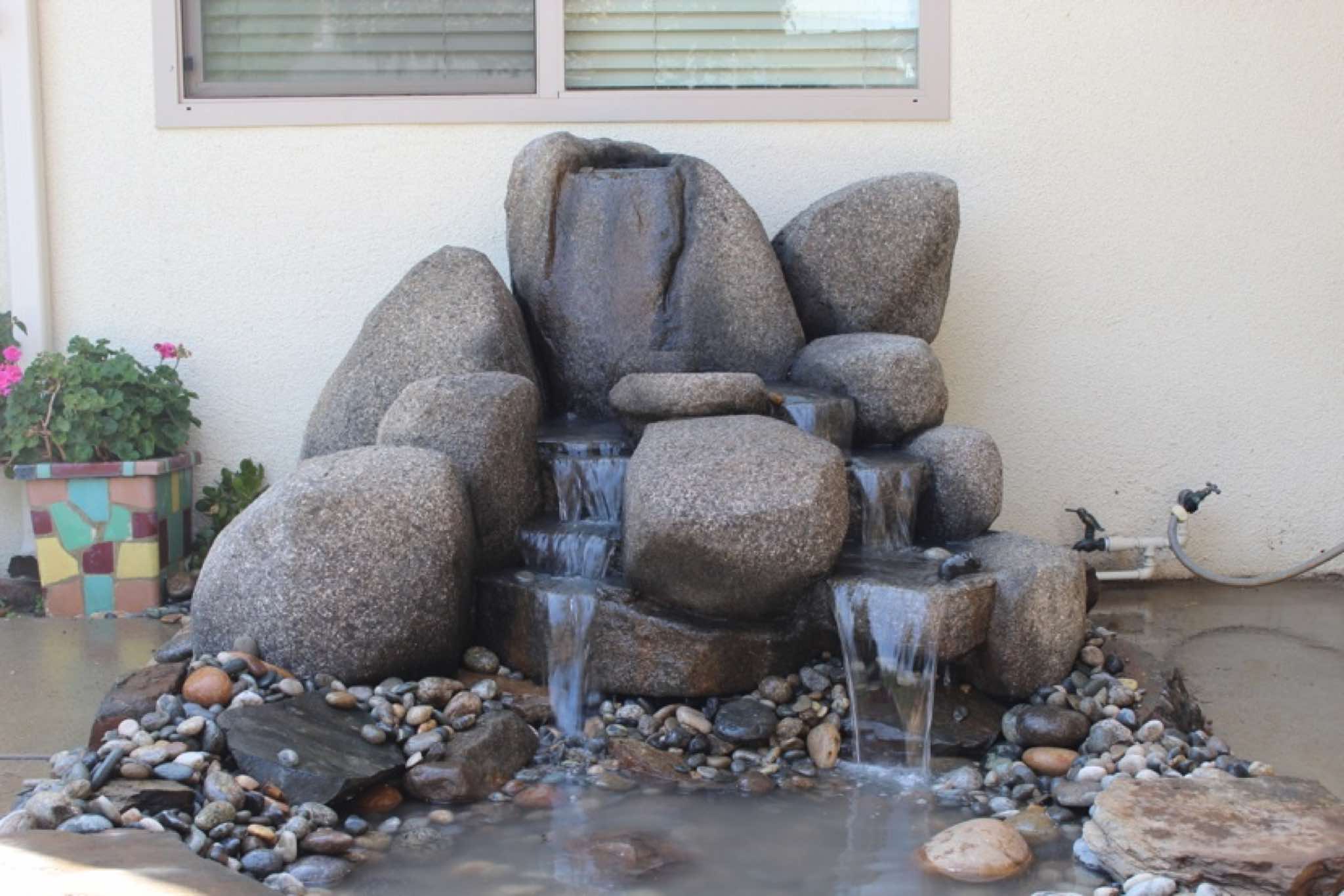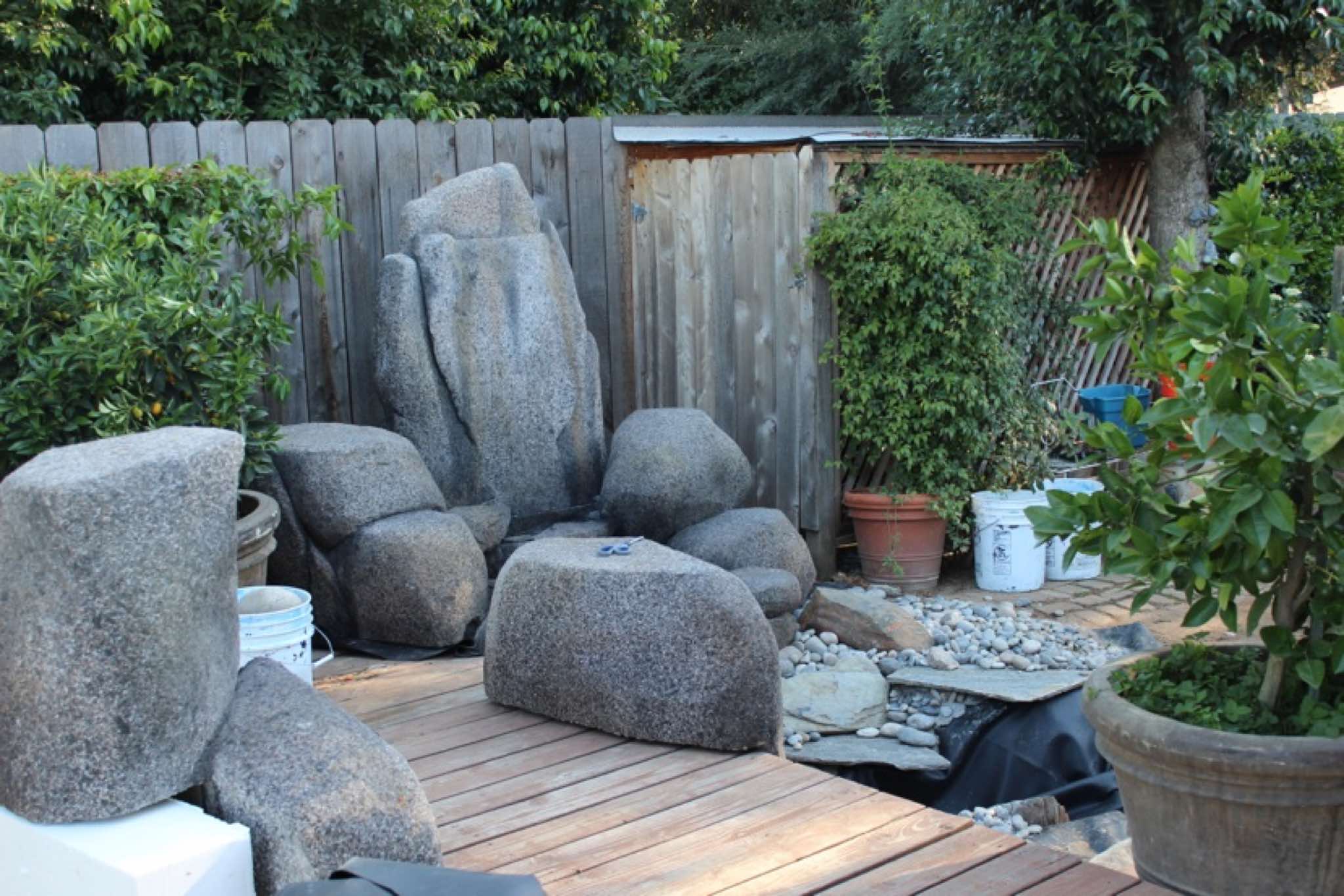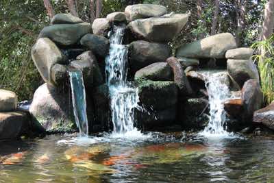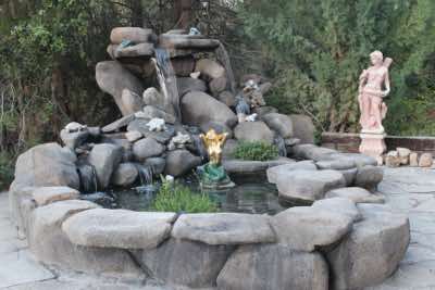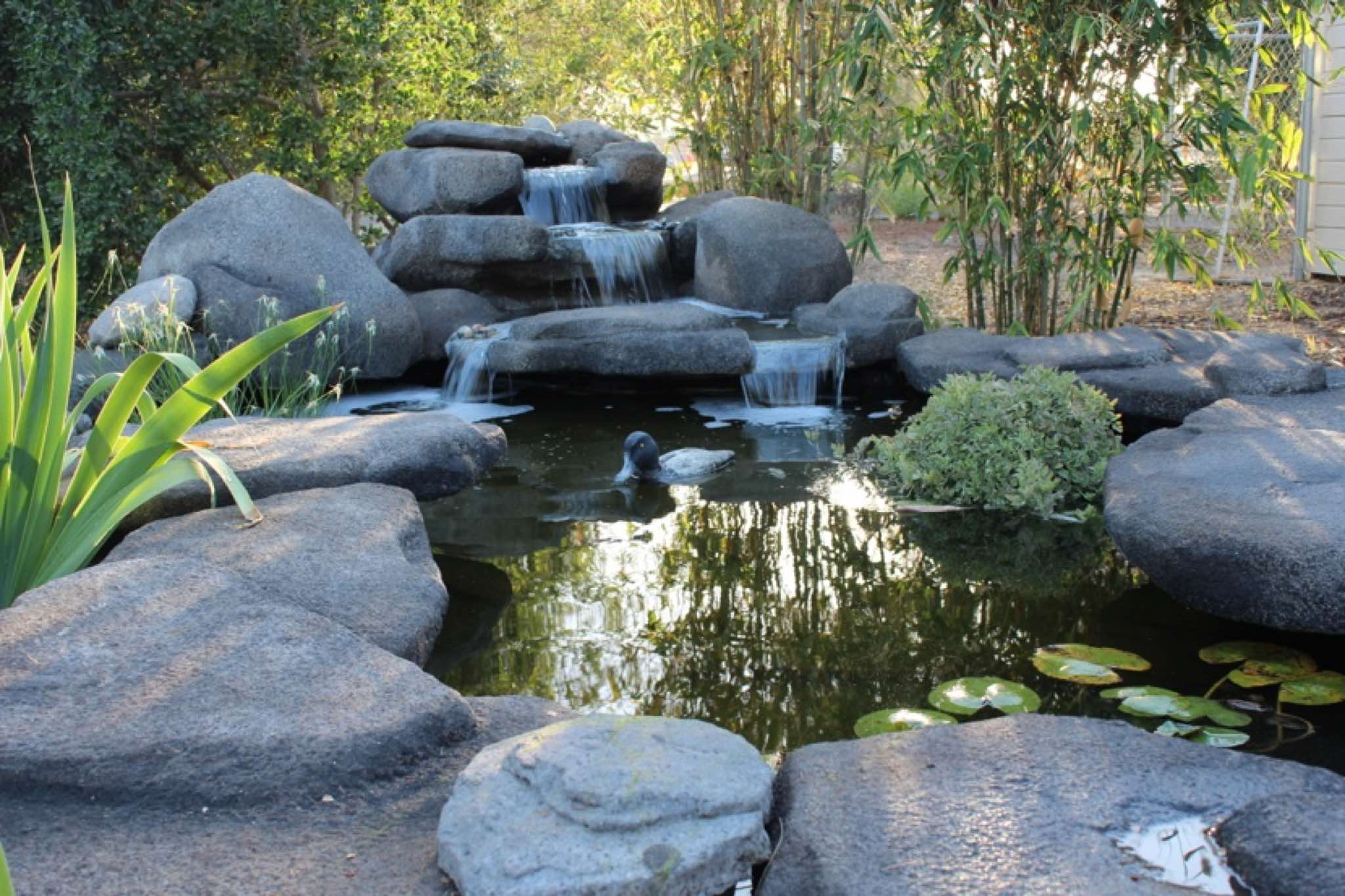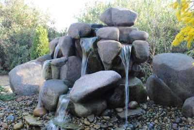 This small pond and waterfall was placed in a bare area next to a wooden deck and pool. The pond is perfect for a few fish or even just to hang you feet in. A combination of real rock and fake rocks were used during the installation. Photos of this installation are also included at the end of this gallery.