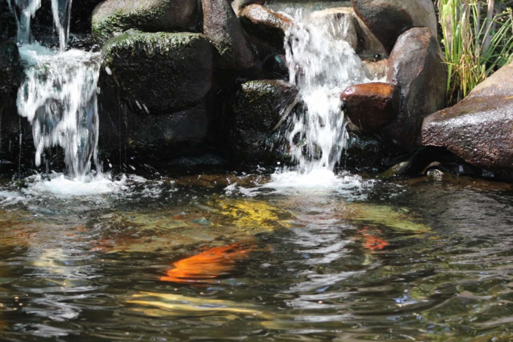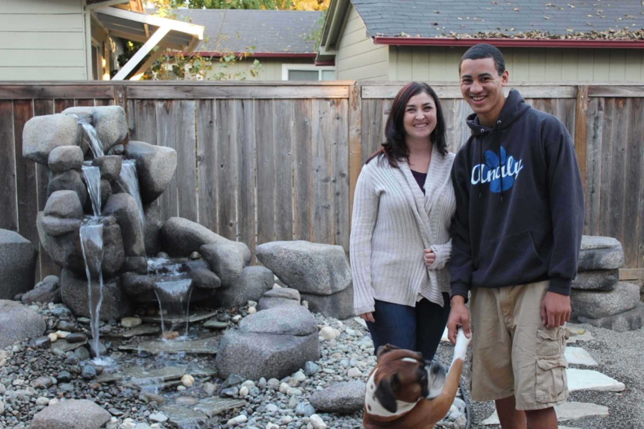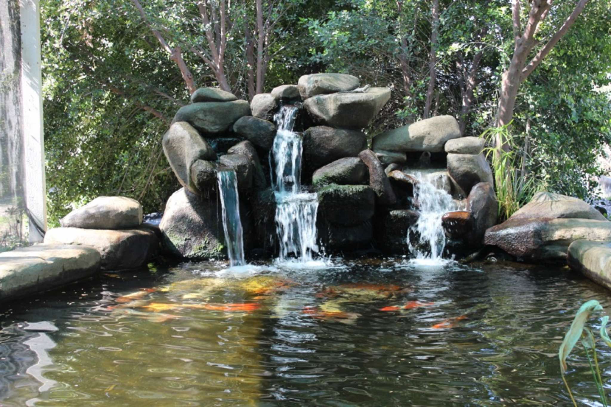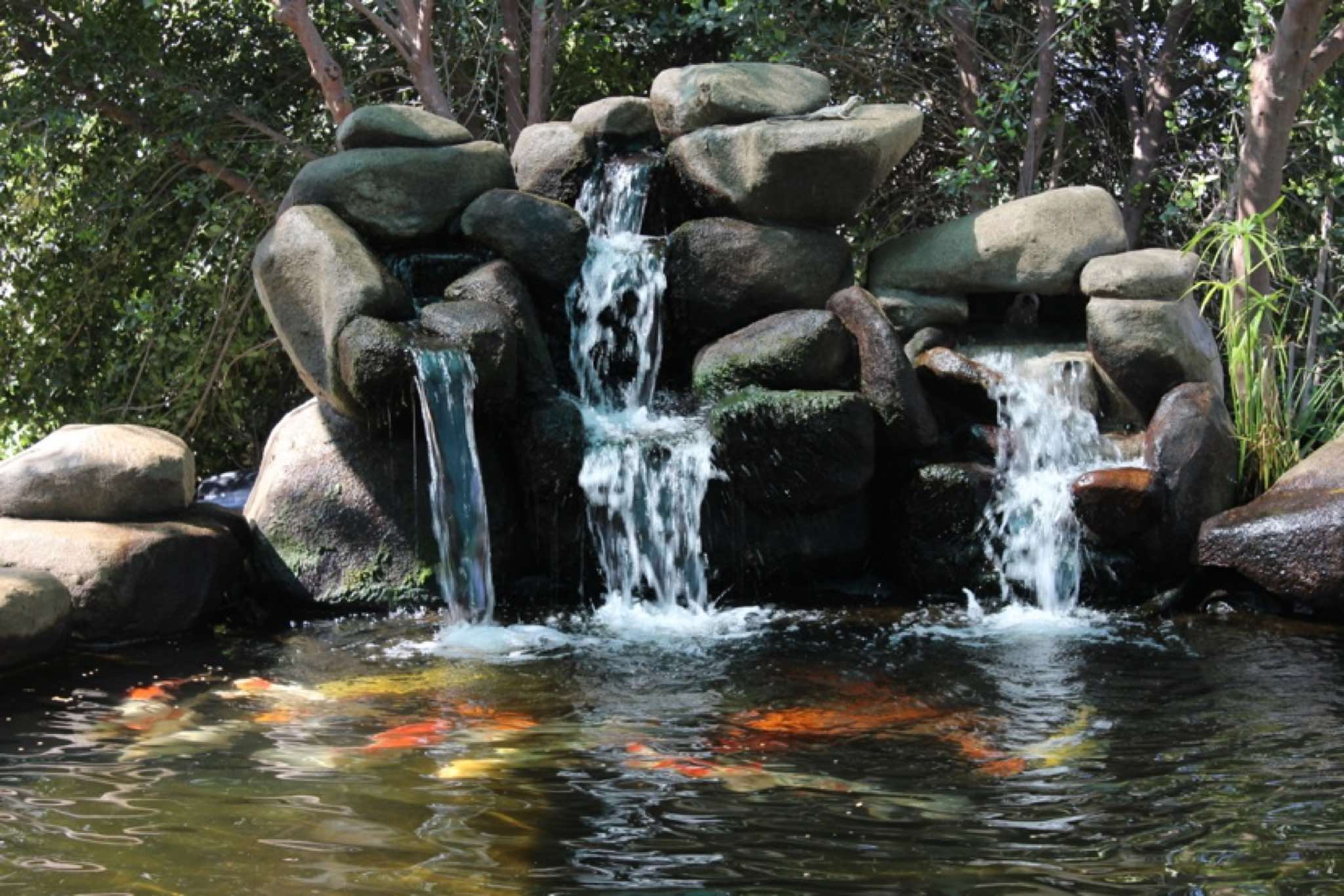 This small pond and waterfall was placed in a bare area next to a wooden deck and pool. The pond is perfect for a few fish or even just to hang you feet in. A combination of real rock and fake rocks were used during the installation. Photos of this installation are also included at the end of this gallery.