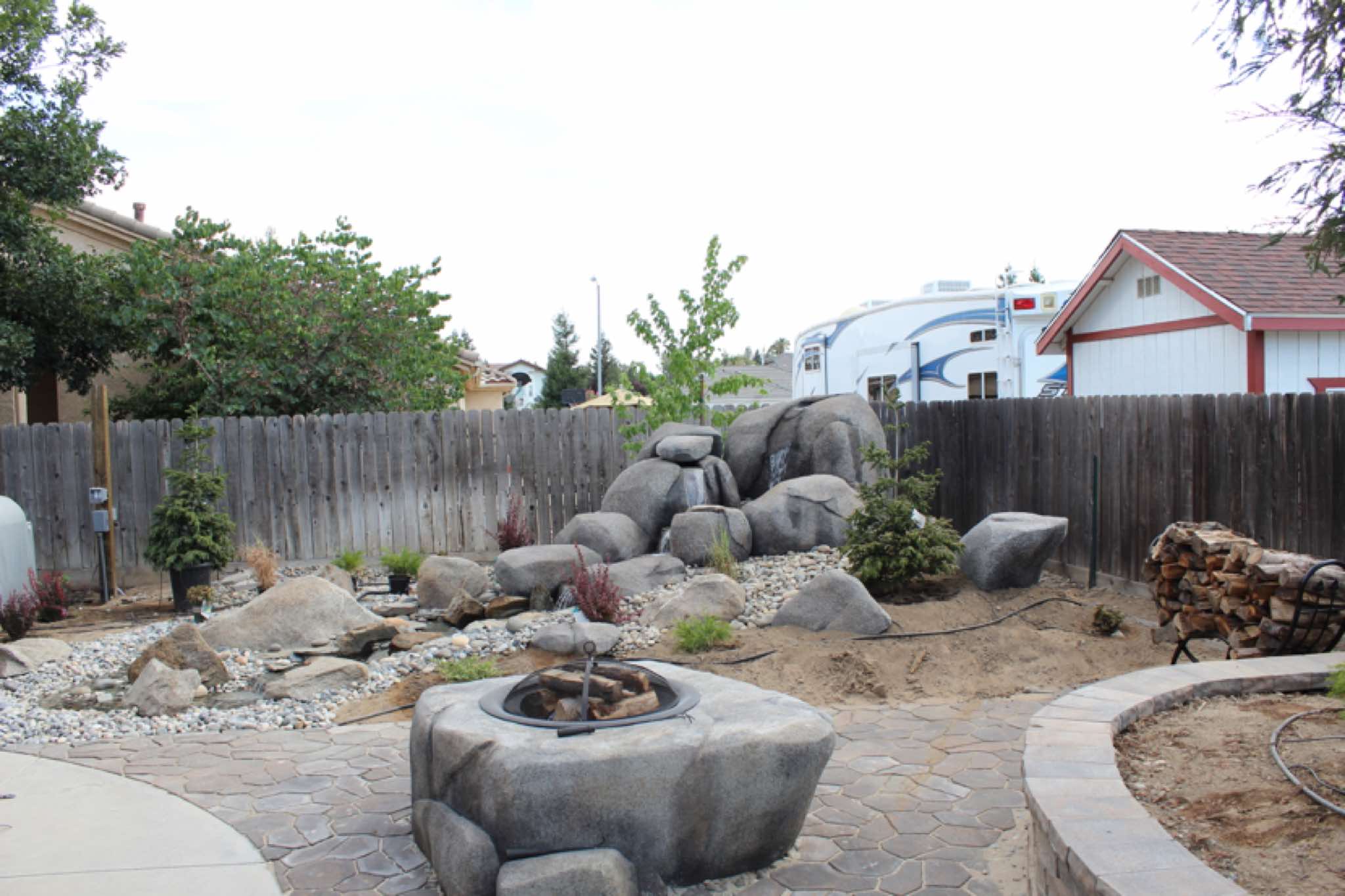 This pondless waterfall was built for a family member who lives out of town. The waterfall has multiple spillways for more water action. This is also the first rock bench we made. You can see photo of the area before the waterfall was installed towards the end of this photo gallery.